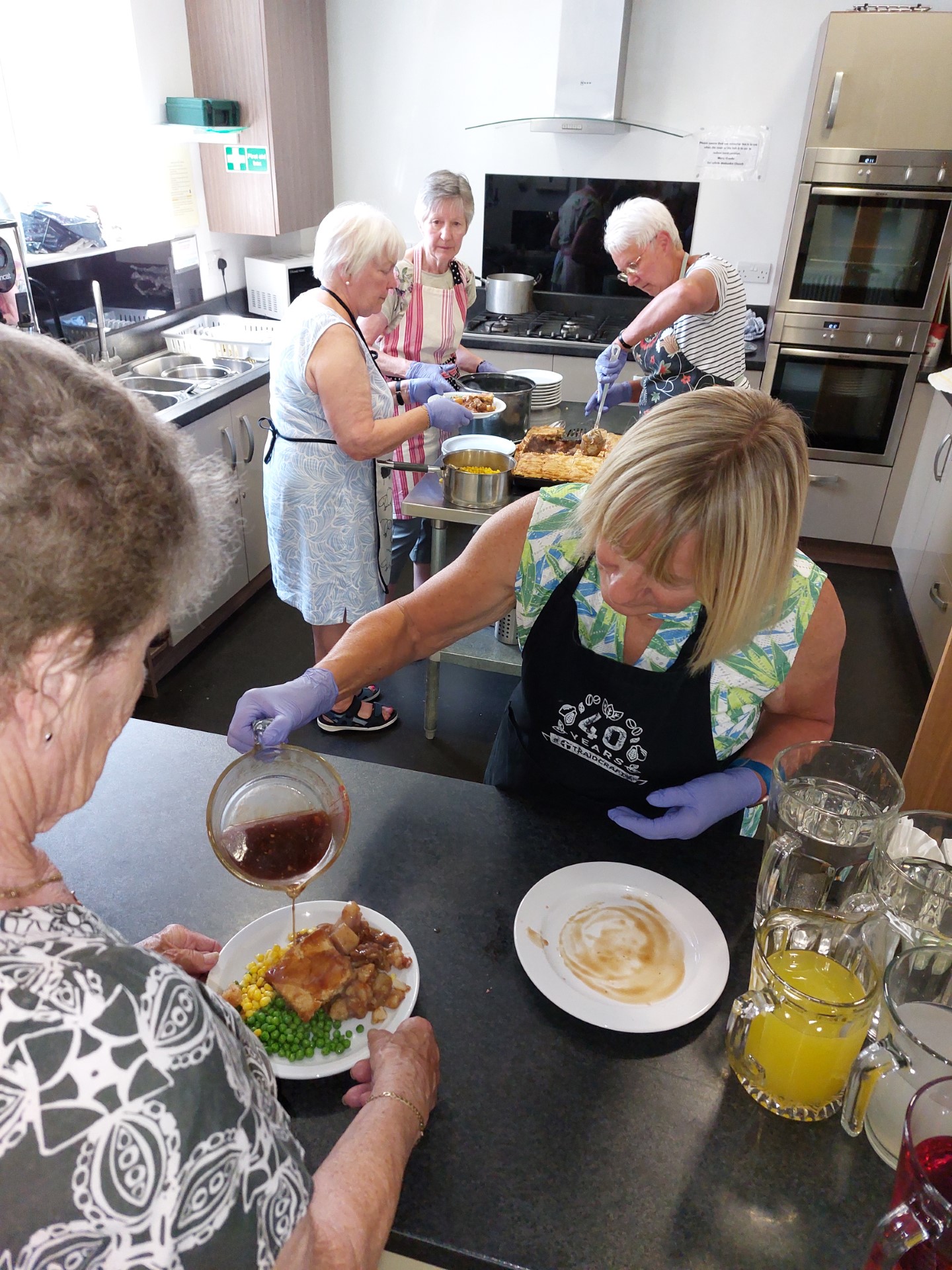 On the third Friday of each month we meet for a 2 course lunch cooked for us by professional caterers and served by our volunteers at the Methodist church hall (Crown Bottom car park) in Holmfirth, followed by a quiz or paper & pen activity if there’s time and always by ‘Mary’s mad raffle’. Transport can be provided on request by one of our team of lovely volunteers. There are usually 30 to 40 people who come together for the ‘Big Meal’, so you will not be alone for long and will soon feel as if you’ve known us all for years!